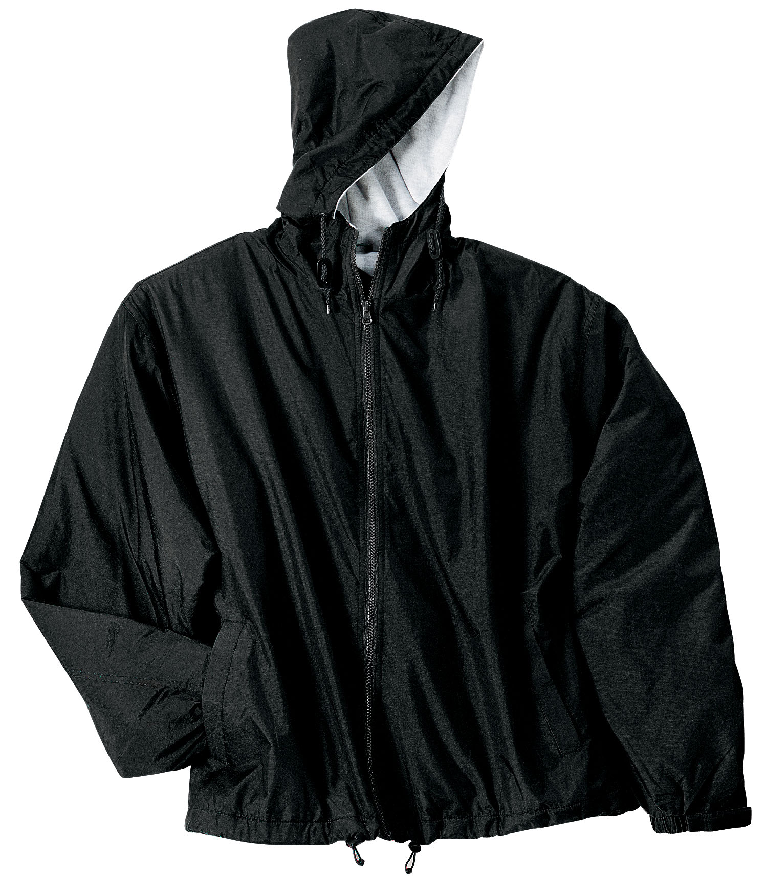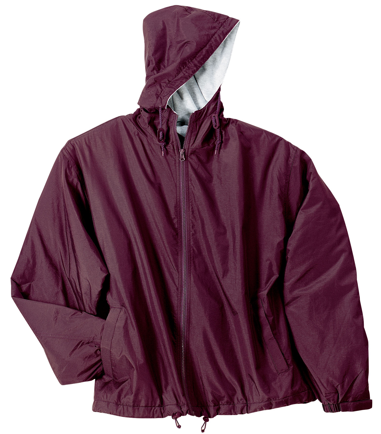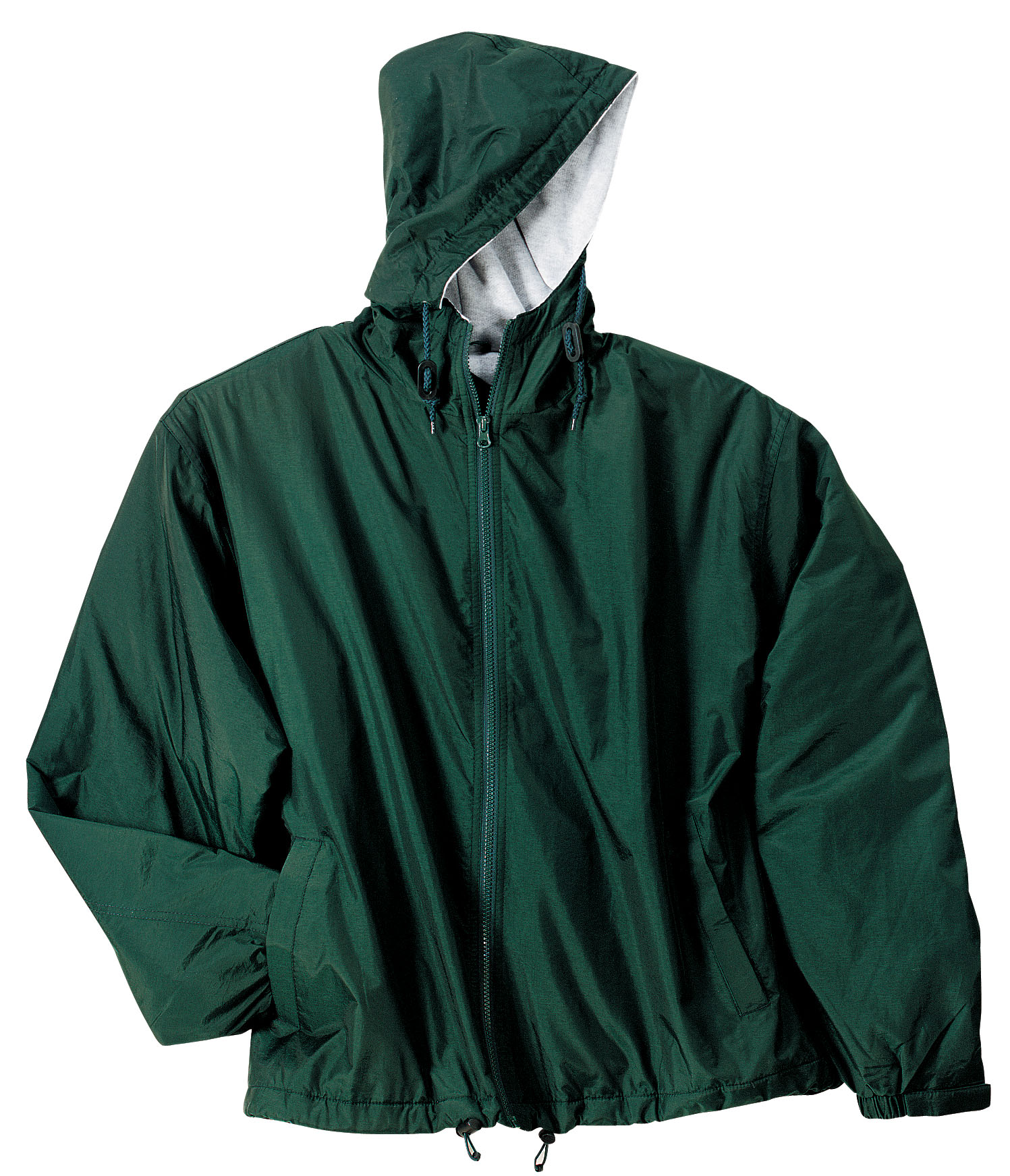 100% polyester sweatshirt fabric body and hood lining, 100% polyester sleeve lining