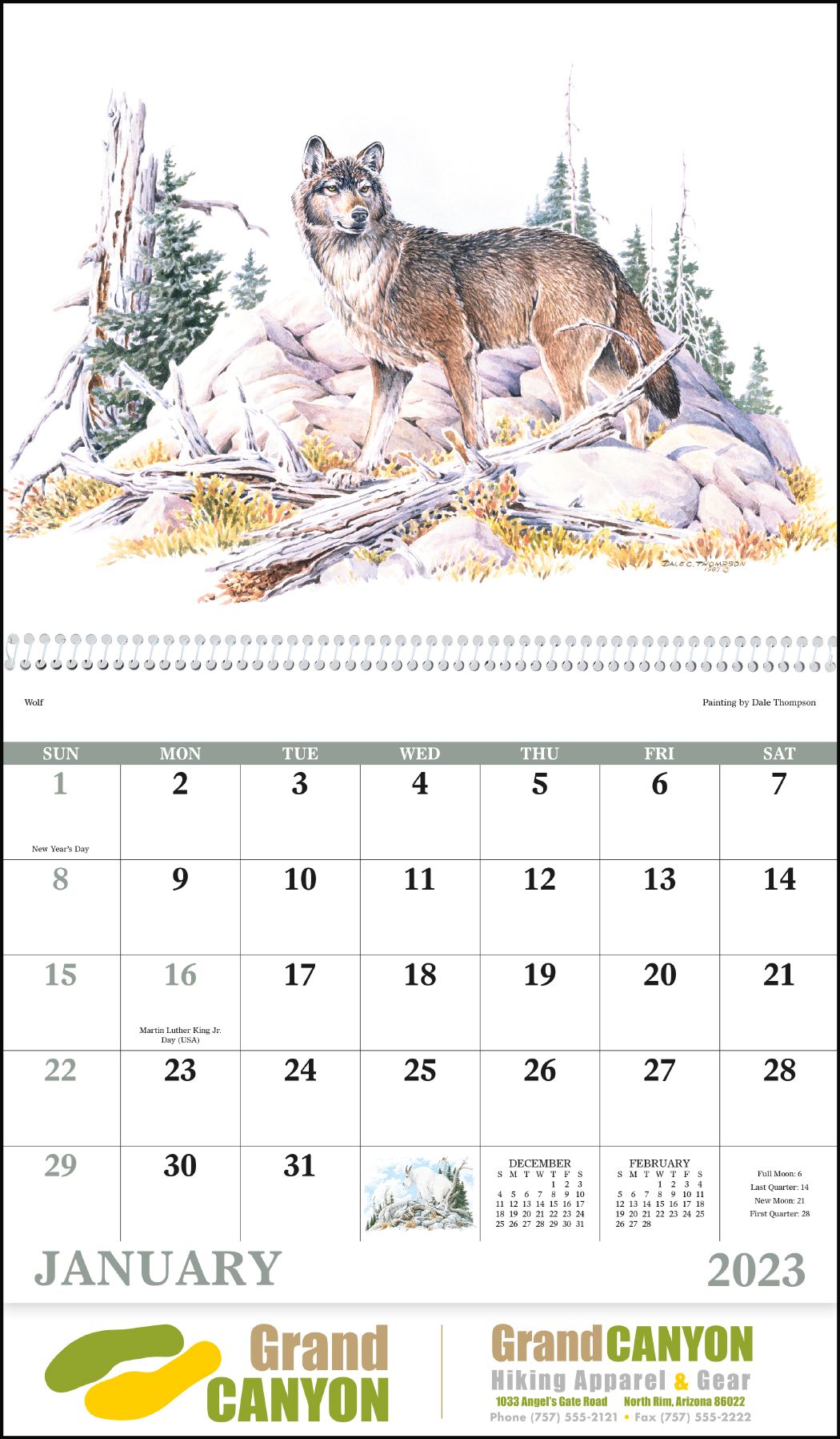 This calendar examines detailed wildlife paintings to bring the outdoors inside. The FSC® label means that the materials used for this product come from well-managed FSC®-certified forests and other controlled sources.